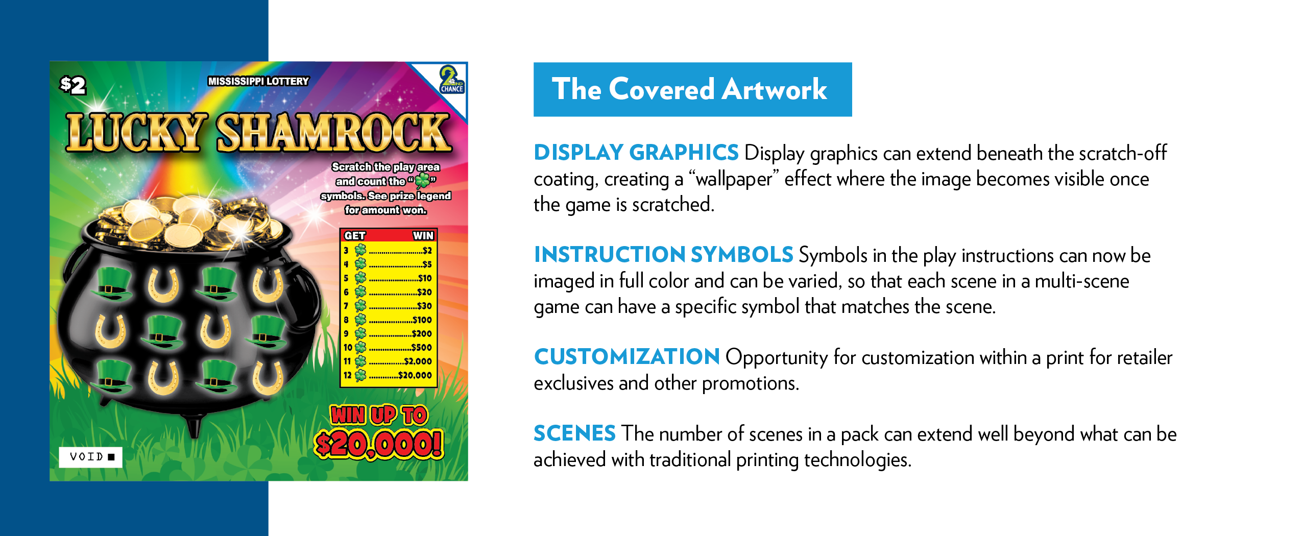 The result is not one new game title but a whole new category of games that offer lotteries an extraordinary level of customization, jaw-dropping resolution, and the ability to enhance virtually all elements of an instant ticket.